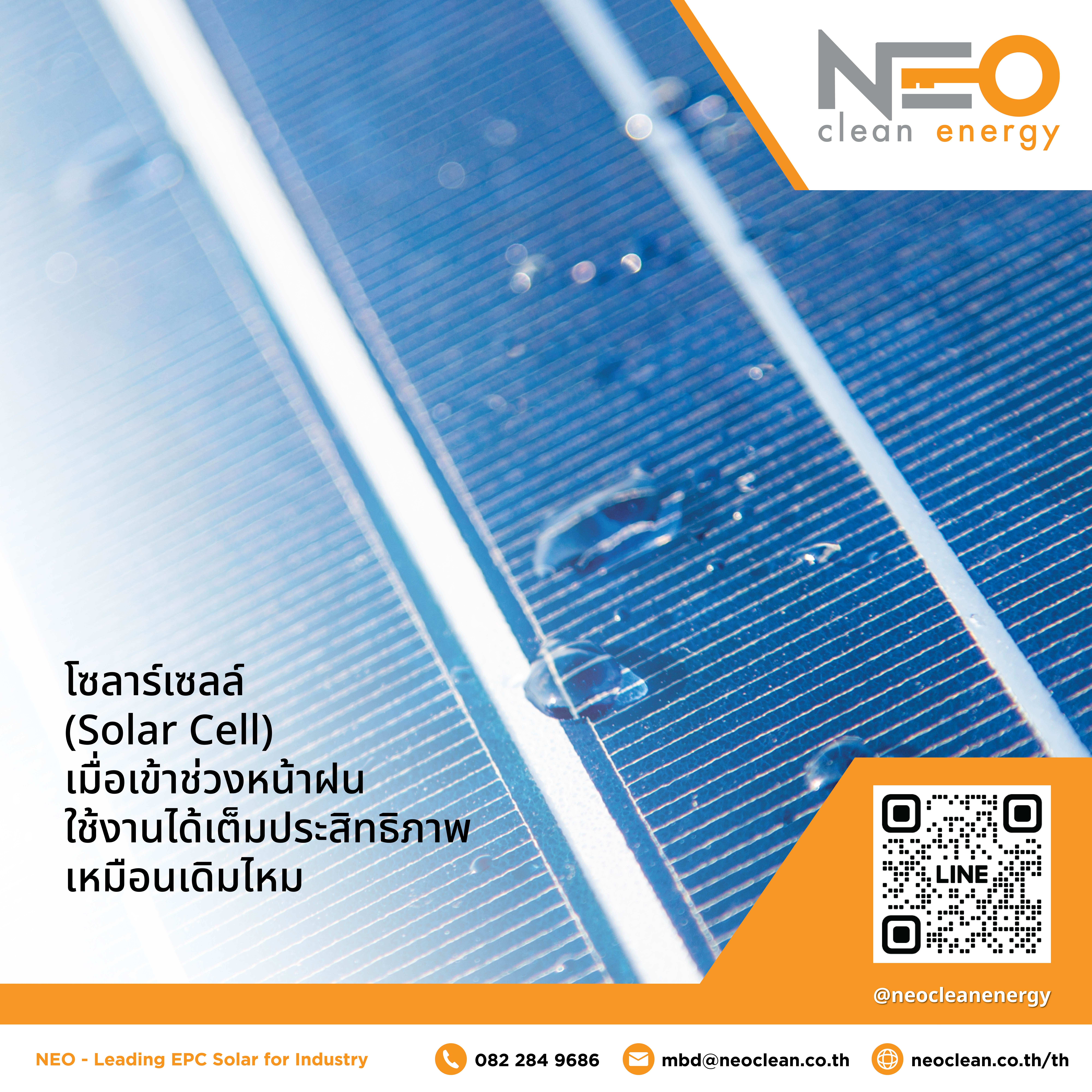ในช่วงที่ฝนตก หลายท่านมักกังวลว่าแสงแดดจะไม่เพียงพอ เพราะฤดูฝนเป็นฤดูที่มีเมฆมากเป็นพิเศษ แต่ในความเป็นจริงแล้ว ยังสามารถใช้งานไฟฟ้าได้อยู่ เพราะโซล่าเซลล์ผลิตไฟฟ้าจะความเข้มของแสง เพียงแต่จะผลิตไฟฟ้าได้มากหรือน้อยก็ขึ้นอยู่กับความเข้มของแสงในวันนั้น ๆ